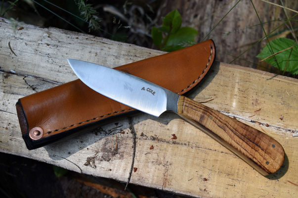 My young friend, Alden Cole, is already a premier knife maker in his own right. His hand made blades, handles and leather sheathes are from his own hand. I have one of these. It is the best knife I have ever owned. Great work, my friend!